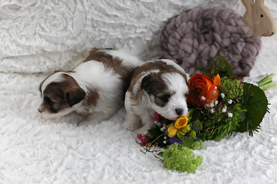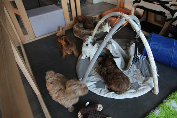 Meine erwachsenen Havaneser helfen liebevoll bei der Betreuung und Erziehung des Nachwuchses mit. Somit lernen sie schnell, wie man sich in ein Rudel integriert. Unsere Welpen sind dadurch bestens sozialisiert und auf das spätere Leben vorbereitet.